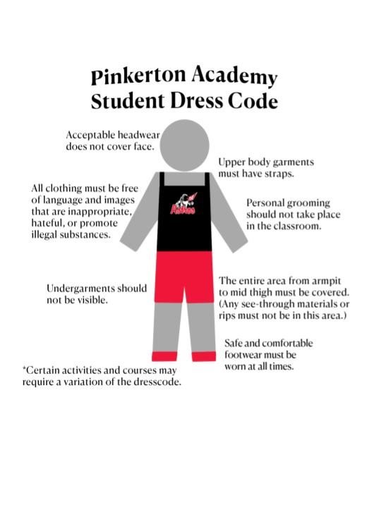 Refer to the dress code policy as stated in the student handbook and follow the student designed poster about acceptable dress.